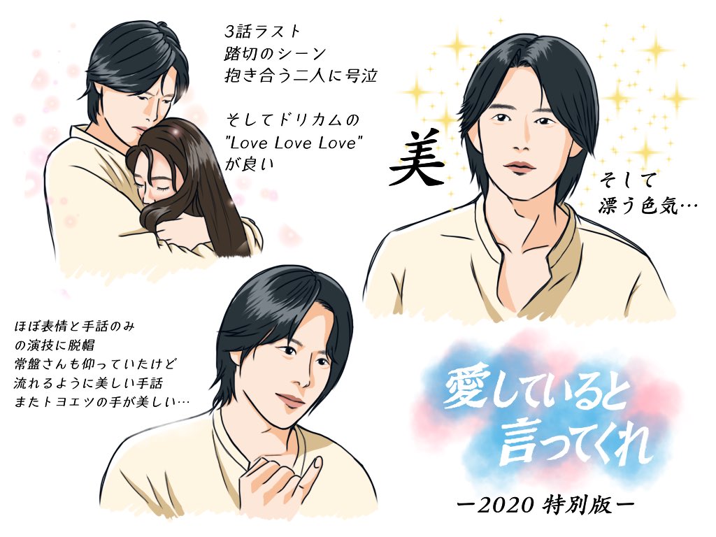 愛していると言ってくれ特別版:最終回 豊川悦司&常盤貴子のラブストーリー結末 「井の頭公園駅」感動シーンも ラブストーリー代表作の1つでもあるドラマ「愛していると言ってくれ」の気になる結末をネタバレします。 聴覚障害者の画家と女優の卵は 『愛していると言ってくれ』最終回にネット感動の嵐 "トヨエツロス"の声も殺到 俳優の豊川悦司、常盤貴子が主演を務めたドラマ『愛して